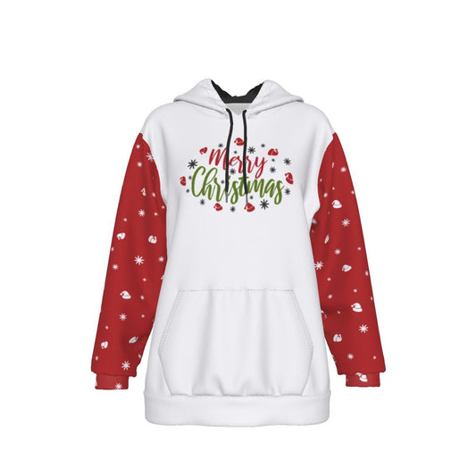Women's Fleece Christmas Hoodie - Merry Christmas - Red Sleeves