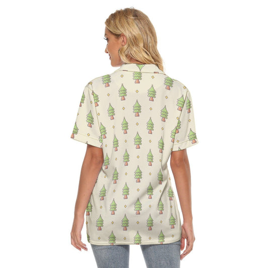 Women's Christmas Polo Shirt - 16-Bit Christmas Trees