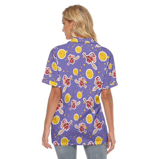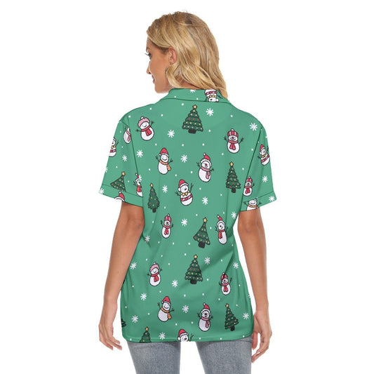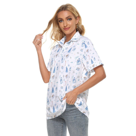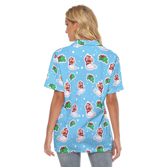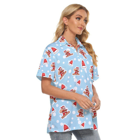 Women's Christmas Polo T-Shirt - Blue Pattern