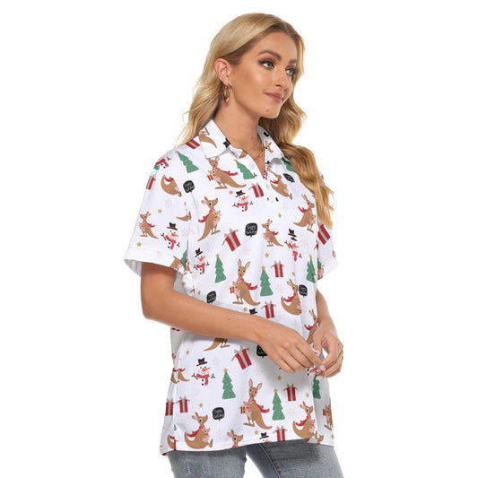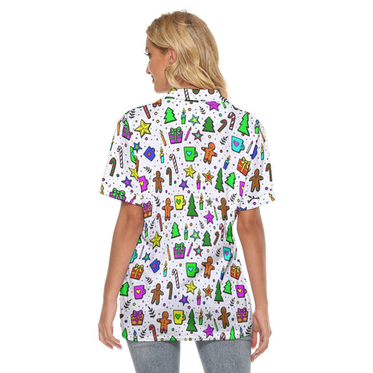 Women's Christmas Polo T-Shirt - Bright Doodle