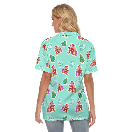 Women's Christmas Polo T-Shirt - Green "Let's Go"