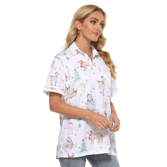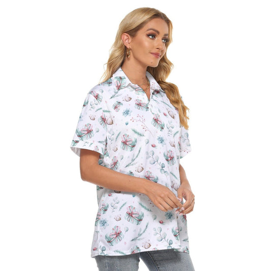 Women's Christmas Polo T-Shirt - Natural Pattern