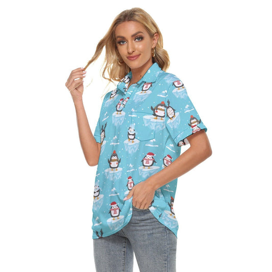 Women's Christmas Polo T-Shirt - Icy Penguins