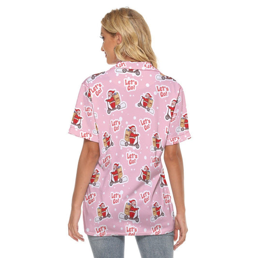 Women's Christmas Polo T-Shirt - Pink "Let's Go"