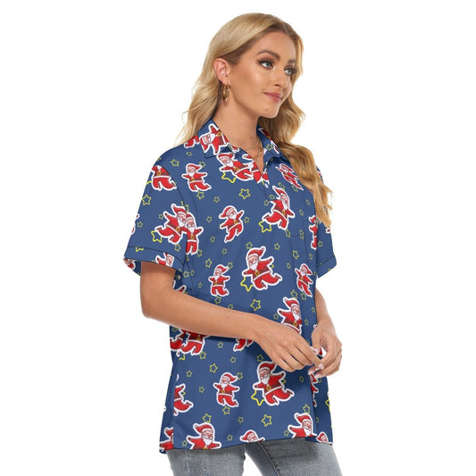 Women's Christmas Polo T-Shirt - Santa and Stars