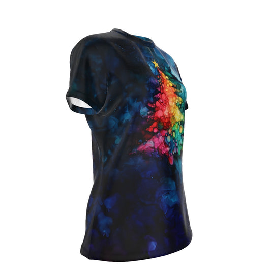Women's Short Sleeve Christmas Tee - Blotched Tree