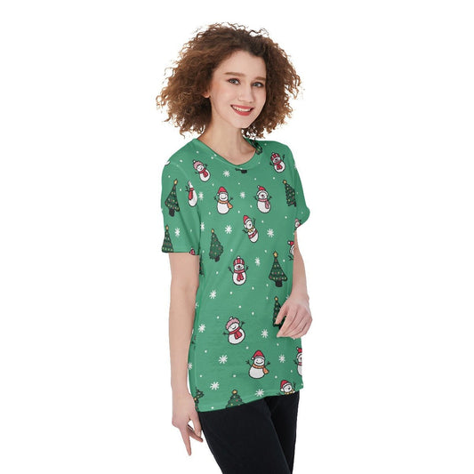 Women's Short Sleeve Christmas Tee - Green Snowman