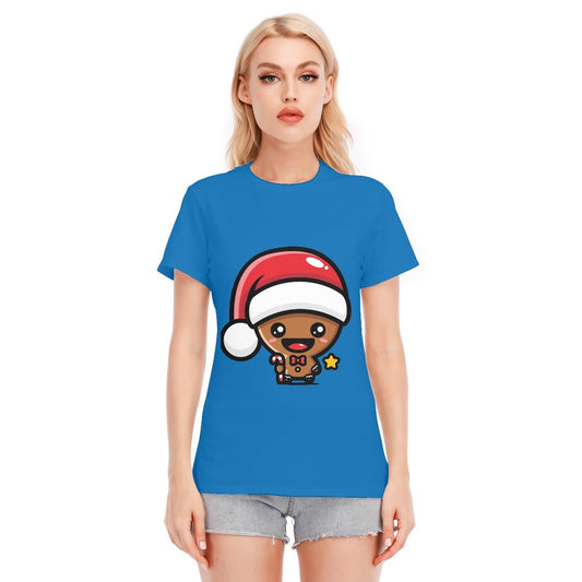 Women's Short Sleeve Christmas Tee - Kawaii Gingerbread Man