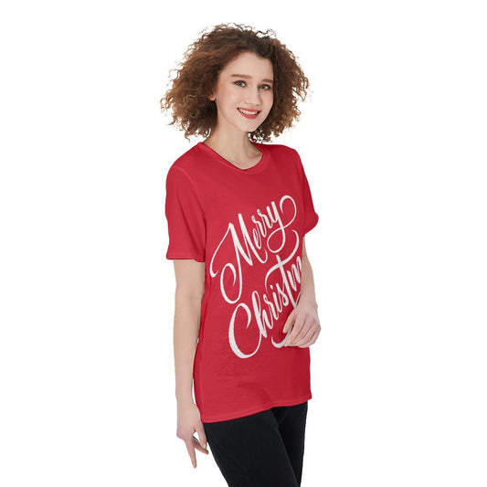 Women's Short Sleeve Christmas Tee - Merry Christmas - Red