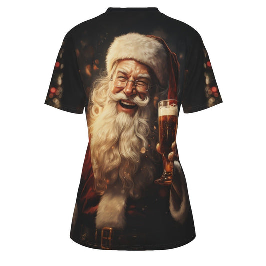 Women's Short Sleeve Christmas Tee - Santa Beer