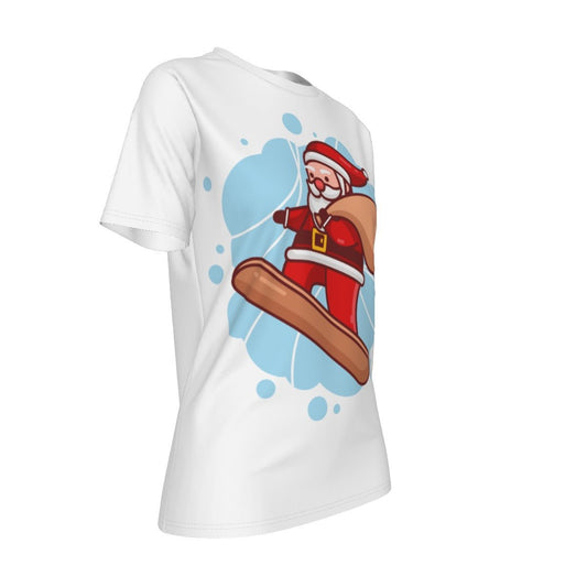 Women's Short Sleeve Christmas Tee - Santa Snowboarder