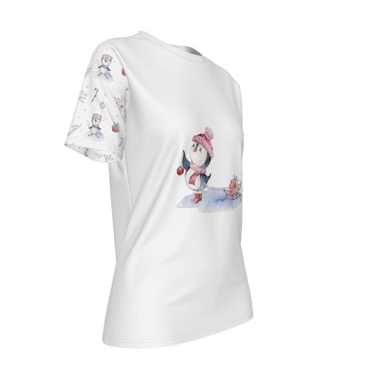 Women's Short Sleeve Christmas Tee - Skating Penguin