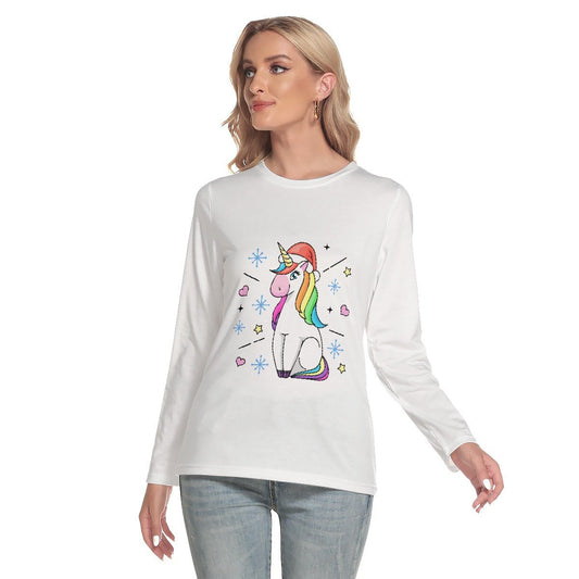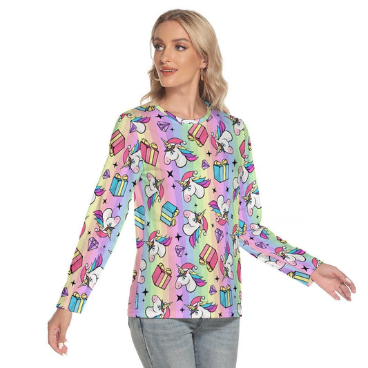Women's Long Sleeve Christmas T-shirt - Rainbow Unicorns