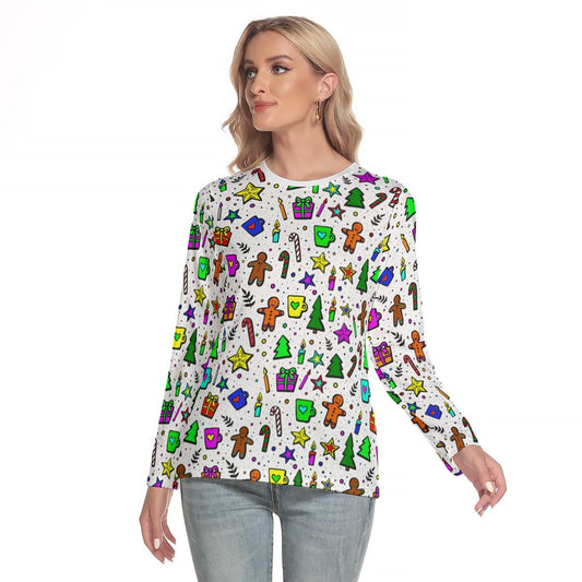 Women's Long Sleeve Christmas T-shirt - Bright Doodle