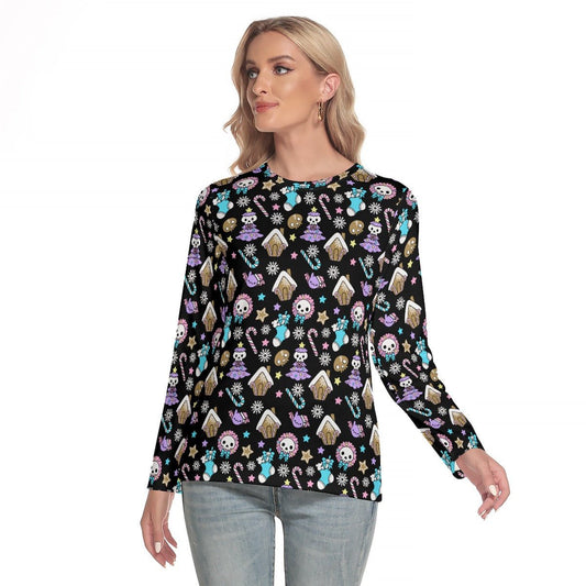 Women's Long Sleeve Christmas T-shirt - Creepy Kawaii - Black