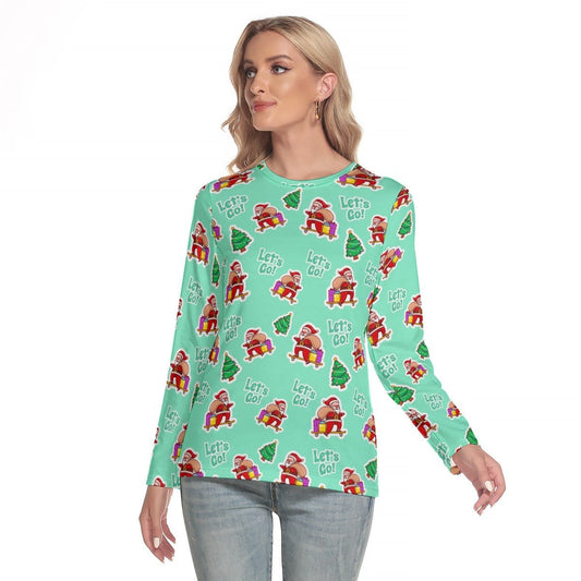 Women's Long Sleeve Christmas T-shirt - Green "Let's Go"