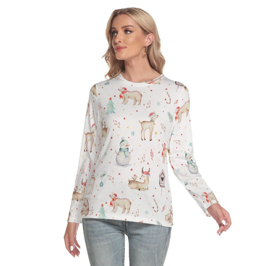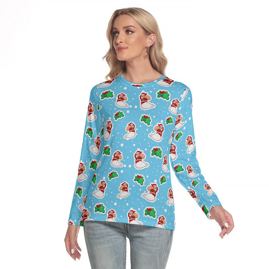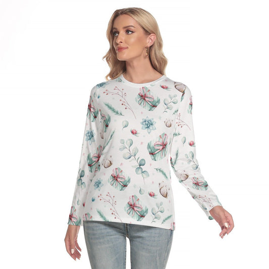 Women's Long Sleeve Christmas T-shirt - Natural Pattern
