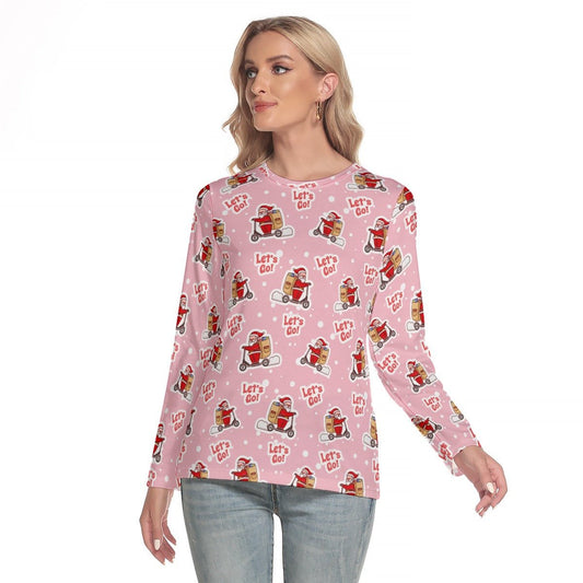 Women's Long Sleeve Christmas T-shirt - Pink "Let's Go"