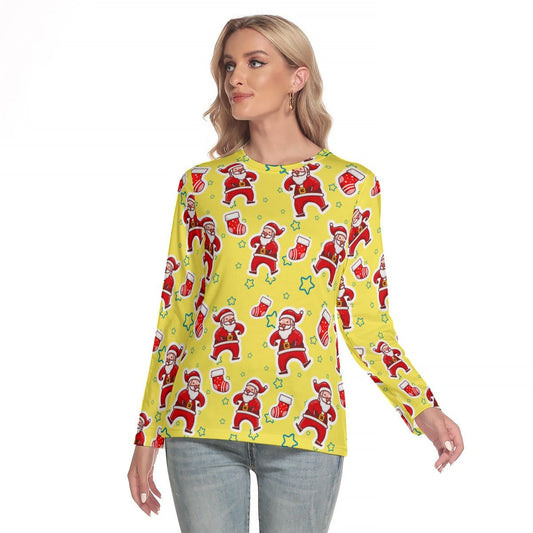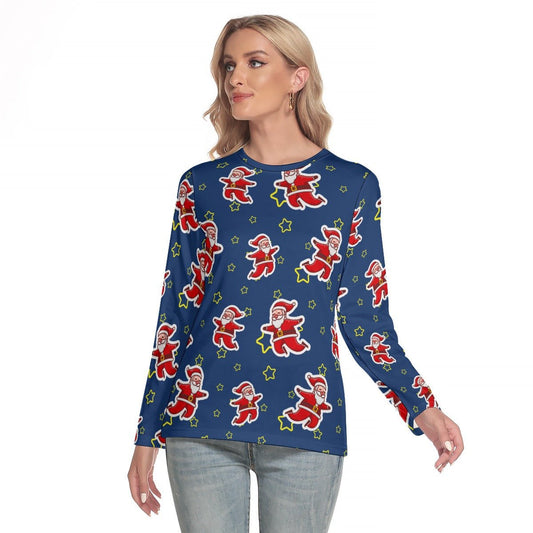 Women's Long Sleeve Christmas T-shirt - Santa and Stars