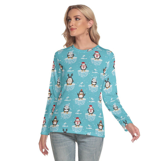 Women's Long Sleeve Christmas Tee - Icy Penguins