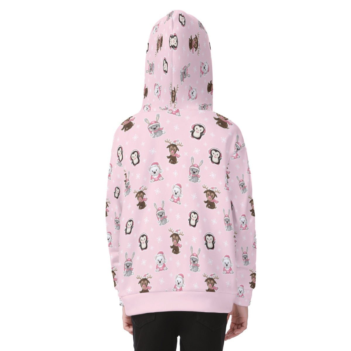 Kid's Fleece Zip Christmas Hoodie - Polar Pink